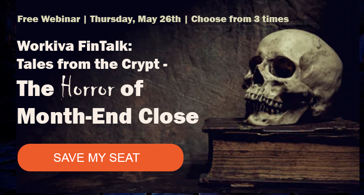 Thursday, May 26th, 2022 | Choose your preferred time Workiva FinTalk: Tales from the Crypt - The Horror of Month-End Close Learn Proven Ways to Avoid Month-End Close Nightmares It's that time again…that one you dread…where you don’t even want…